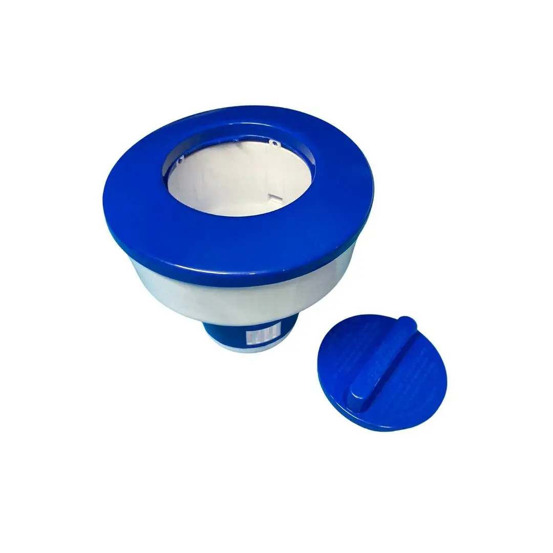 Distributeur de Chlore Flottant permettant d’y insérer des galets de chlore ou de brome jusquà 6 cm de diamètre.