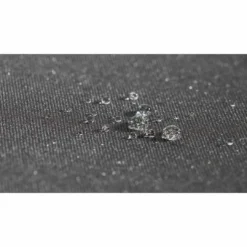 Elle est faite en tissu noir en toile, 100% polyester enduit PU 160 gr/m². Ce tissu outdoor est fait pour l’extérieur, il est teinté dans la masse et permet une haute résistance aux UV. De plus il est déperlant et imperméable.
